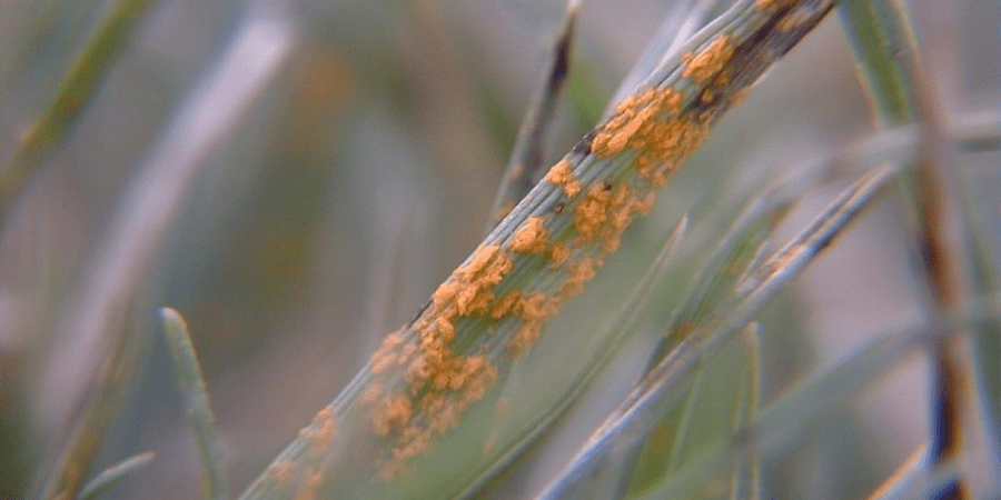 Symptoms: Rust causes small yellow specks on leaves and stems that develop into orange or red pustules. Lawns heavily affected will have an orange or reddish hue. You’ll also notice “rust” on your shoes after mowing.